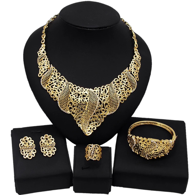 Yulaili Новое поступление европейский и американский дизайн простое и стильное ожерелье серьги браслет кольцо для женщин свадебный ювелирный набор