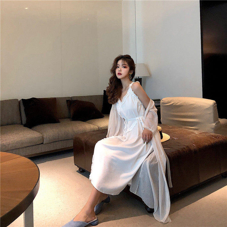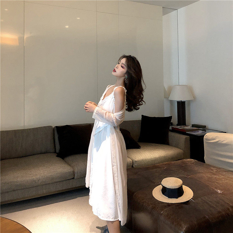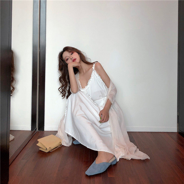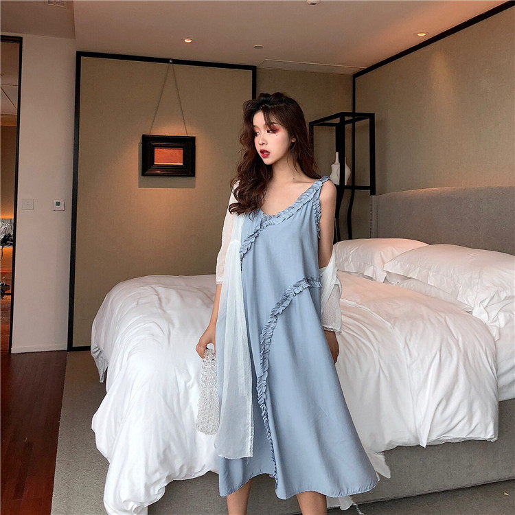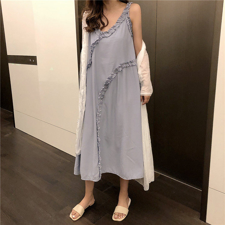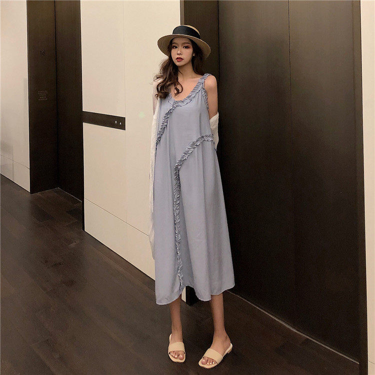 2 colors Summer long Dress 2019 korean vintage style Women Sexy solid color ruffles Spaghetti Strap Dress Womens