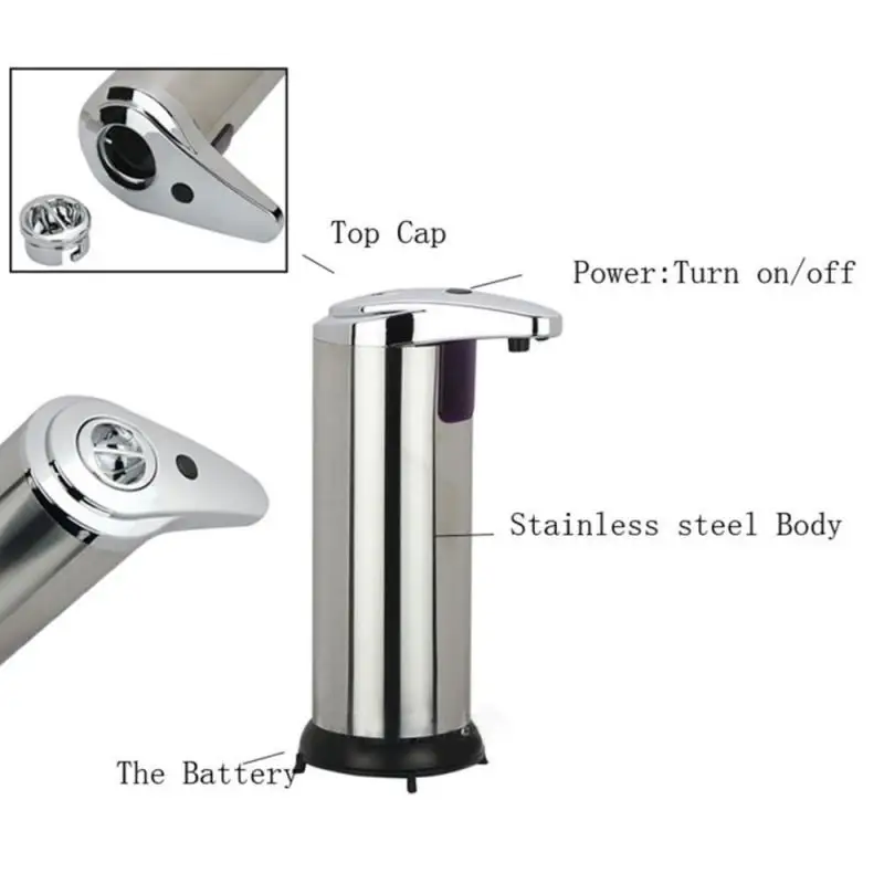 Долговечность: повышает мощность двигателя, может управлять всеми видами дезинфицирующих средств для мыла, обновлять печатную плату, сделать бесконтактный диспенсер для мыла более прочным и продлить срок службы. На основании находится резиновое кольцо, предотвращающее попадание пролитой воды в дозатор мыла из нержавеющей стали.