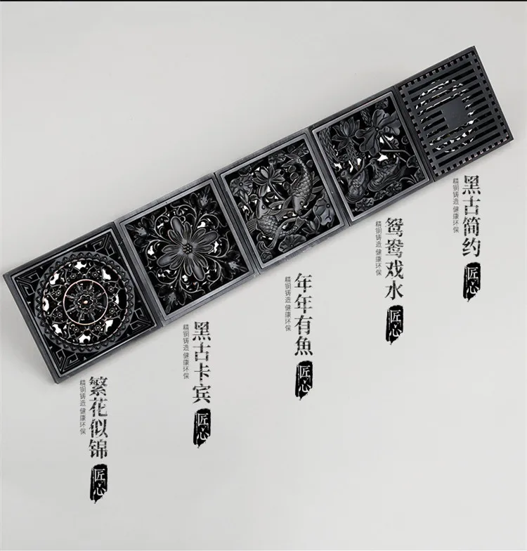 Name:ZGRK Square 10*10 Floor Drain Black Brass Shower Drain Strainer Floor Cover Balcony Bathroom Accessories Grate Waste