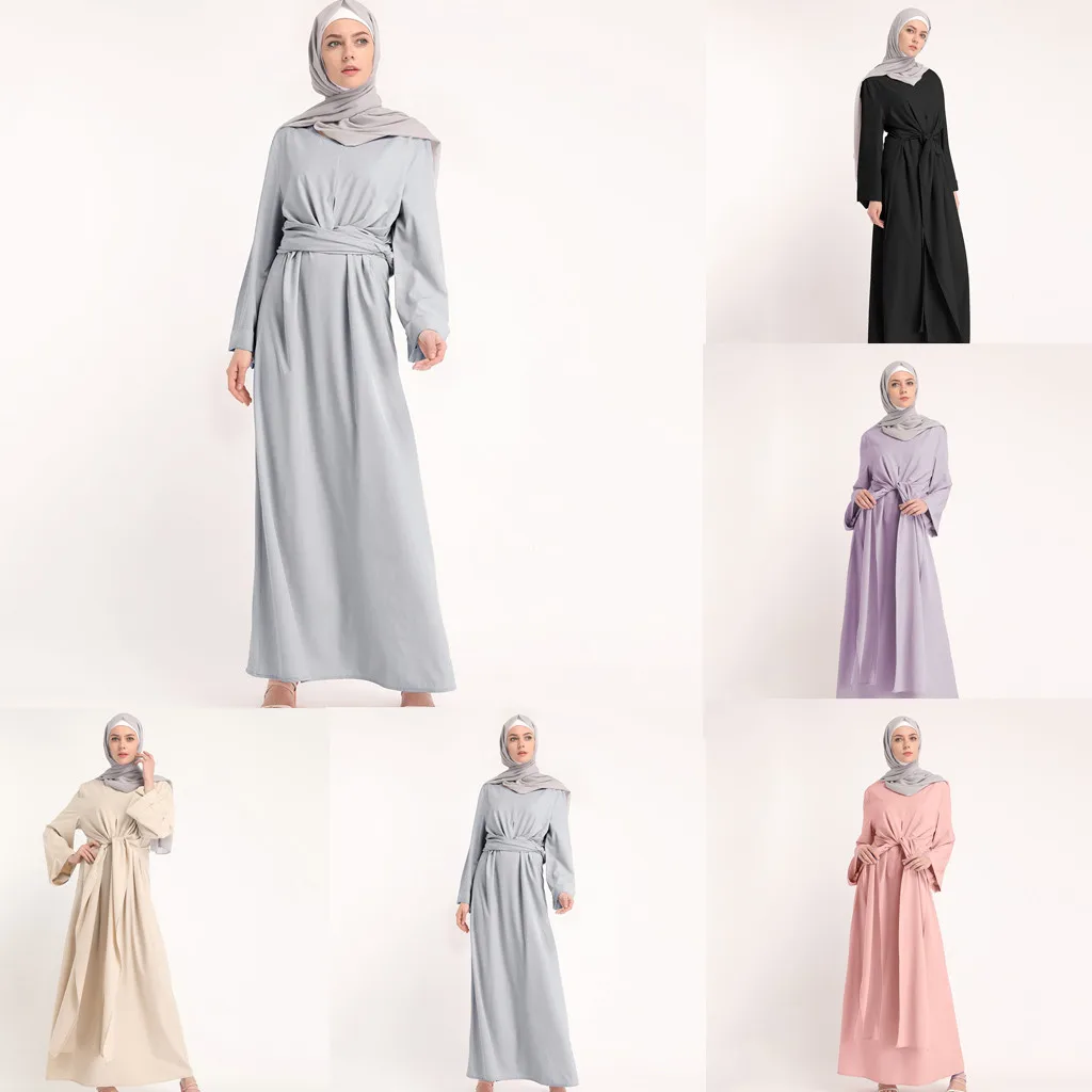 Модное мусульманское женское однотонное платье из двух частей с длинным рукавом