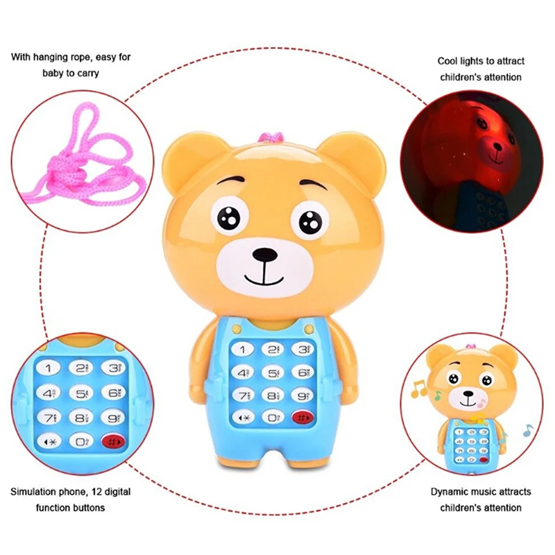 Имитирует мобильный телефон, 12 функциональных цифровых кнопок, нажмите кнопку, издаст динамическую музыку, классные огни, чтобы привлечь внимание ребенка.