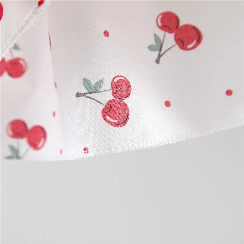 Детское платье, лето 2019, модное хлопковое платье принцессы без рукавов на бретельках с вишневыми рюшами для маленьких девочек, повседневная одежда, шляпа