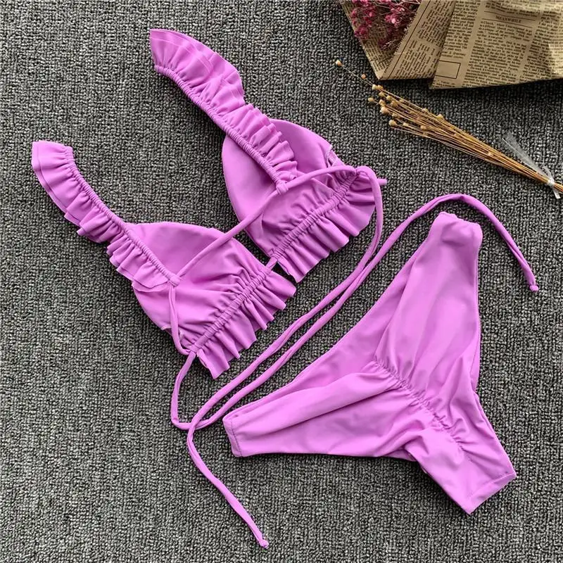 Женское бикини с оборками и леопардовым принтом чашками пуш ап|Купальники| |