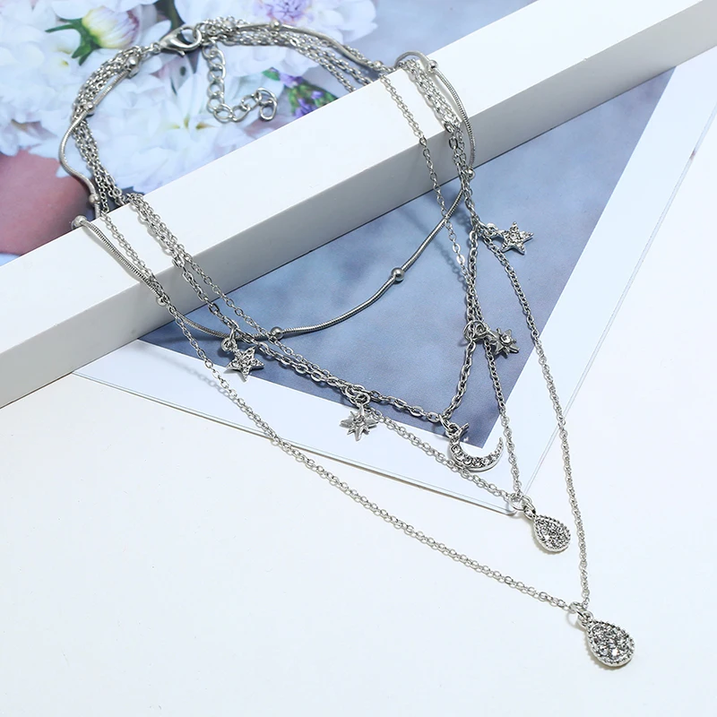 Романтическое звездное небо, стразы, луна, звезды, подвеска, набор для женщин, серебряная цепочка, женские повседневные ювелирные изделия, чокер, подарок другу