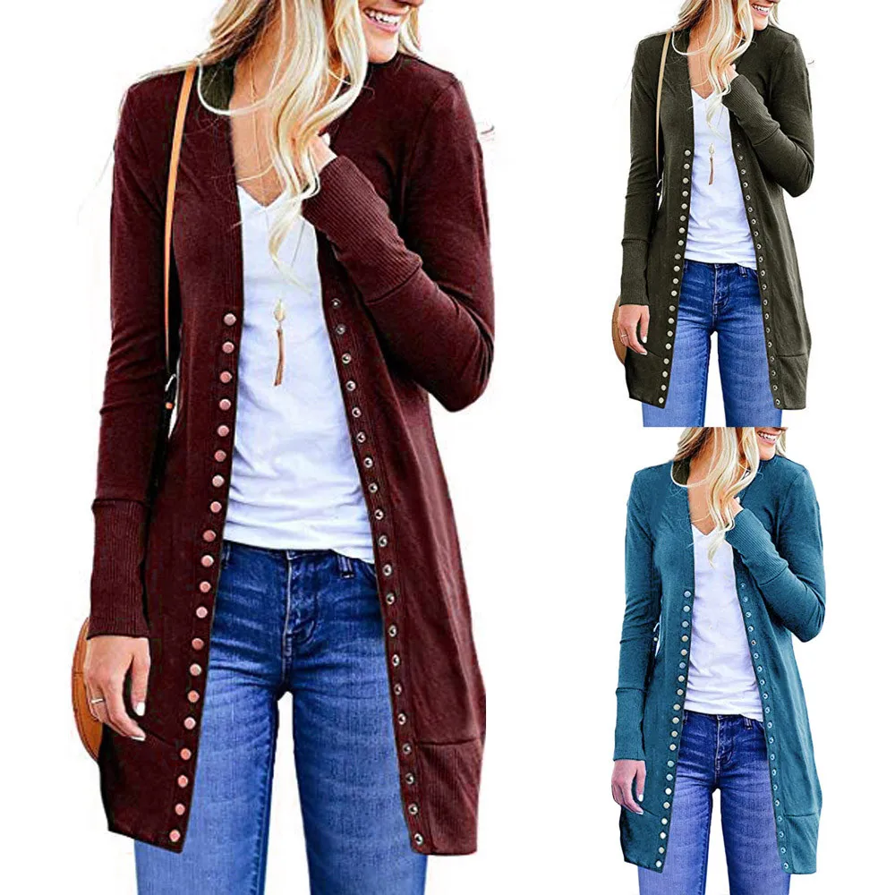 Женский открытый кардиган с пуговицами спереди, свитер с длинным рукавом, свободная драпировка