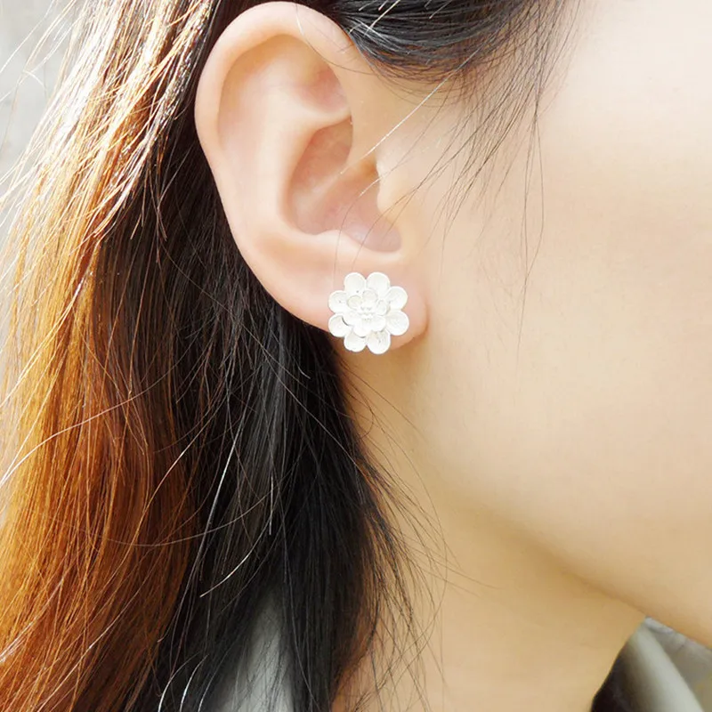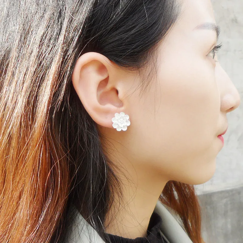 Маленькие серьги-гвоздики из стерлингового серебра 999 пробы с цветами для женщин, роскошные ювелирные изделия ручной работы, корейские этнические Мяо, серебряные серьги-гвоздики
