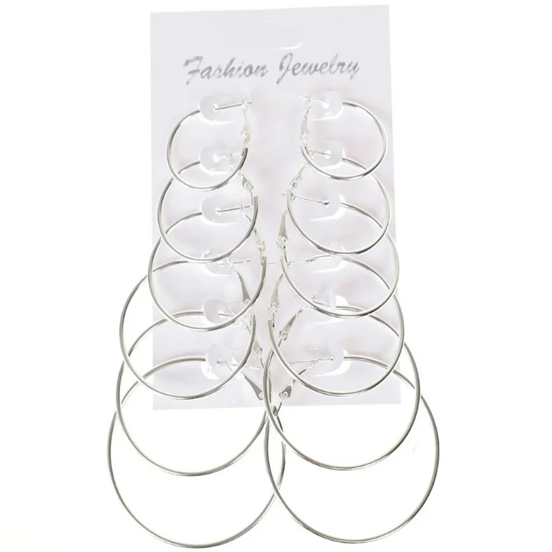 Винтажный праздничный подарок для девочек Большие цветные серьги wemen Материал: металл Тип Металлов: медный сплав Повод: вечеринка, свадьба, день рождения, годовщина, подарок, ношение Цвет: золотой, серебряный В комплект входит: 6 пар/компл. серьги-кольца