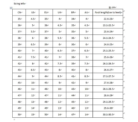Подсказка: Пожалуйста, выбирайте размер в соответствии с длиной Вашей стопы (от носка до пятки). Спасибо!