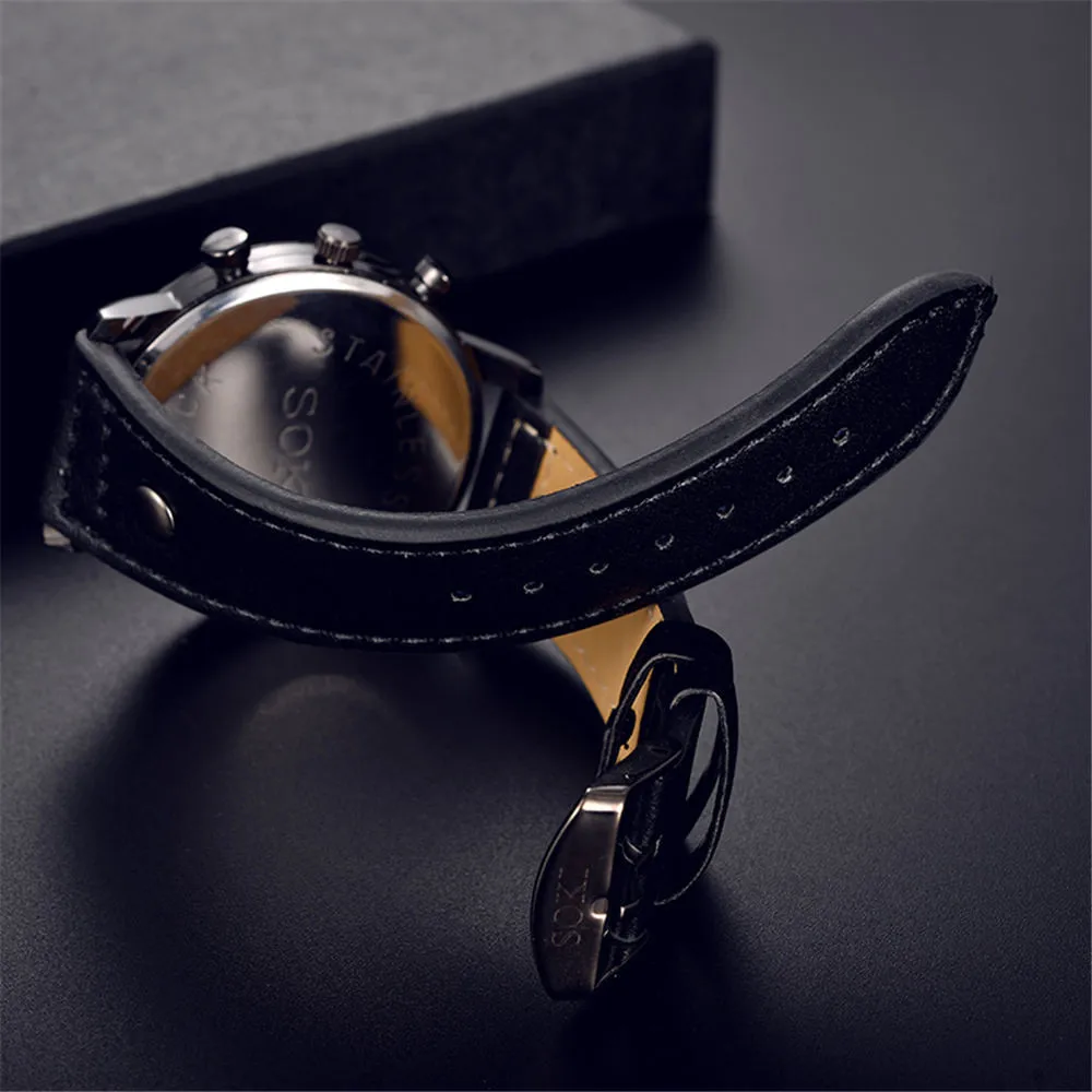 Мужские Аналоговые кварцевые часы деловые модные кожаные с круглыми кварцевыми
