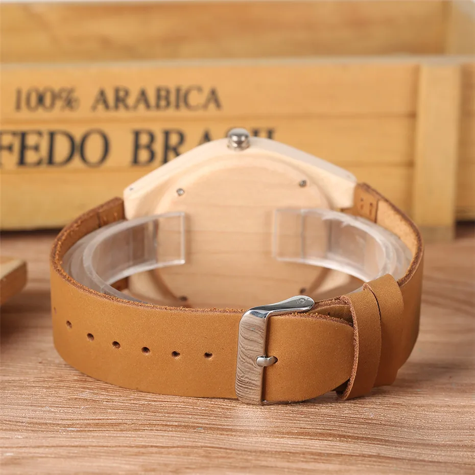 Изысканный внешний вид: уникальный и повседневный циферблат из натурального дерева с изображением зебры и орла, часы с мягким коричневым кожаным ремешком, который легкий и легко носить.