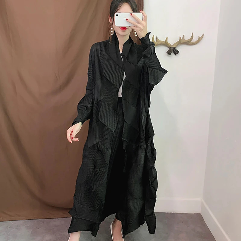 Женский плиссированный Тренч Miyake однотонное Свободное длинное пальто большого