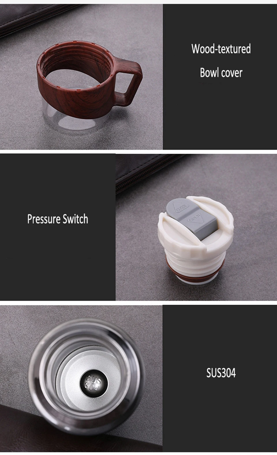 Цвет изделия: белый, черный, коричневый, серебристый Испытание на сохранение тепла: 6 часов (75 ℃), 12 часов (55 ℃) В комплект входит: 1 Вакуумная чашка