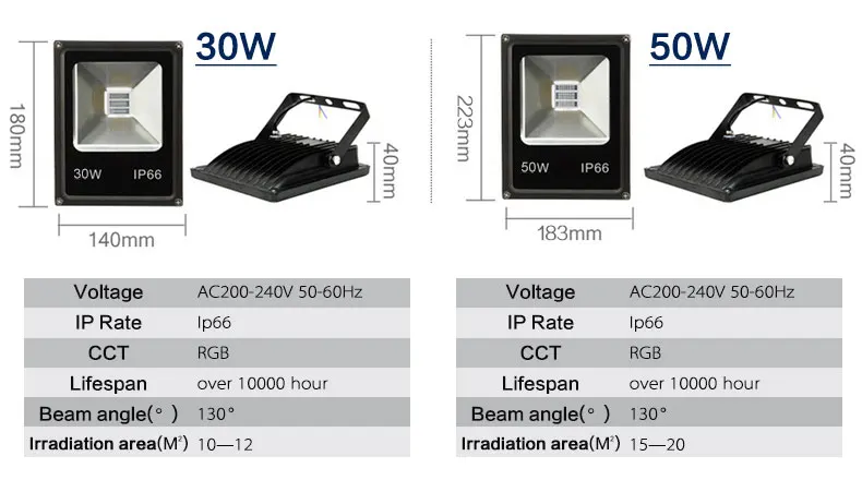 Характеристика: Супер прочный водонепроницаемый Может работать в дождливые дни RGB изменяемый цвет 16 режимов работы Один пульт дистанционного управления может управлять всеми огнями Длительный срок службы Взрывозащищенное Закаленное стекло Увеличенная площадь охлаждения Отличная устойчивость к коррозии и коррозии Высокая термостойкость, водяной туман, капли воды Светодиодный чип высокой яркости Вращающийся кронштейн на 130 ° Толстый алюминиевый корпус лампы Безопасная работа (нет риска пожара, ожога или исследования) Спецификация: Модель: светодиодный RGB прожектор с пультом дистанционного управления Светильник источник света: светодиодный Источник питания: AC Входное напряжение: 200-240 В переменного тока 50-60 Гц Потребляемая мощность: 10 Вт/20 Вт/30 Вт/50 Вт Тип цвета: RGB изменяемый цвет (Авто/пульт ДУ) Угол луча: 130 ° Материал корпуса: алюминий Водонепроницаемость: IP65; IP66 Рабочая температура: -30 градусов ~ 70 градусов Срок службы: более 30000 часов Гарантия: 1 год Посылка: 1 шт.