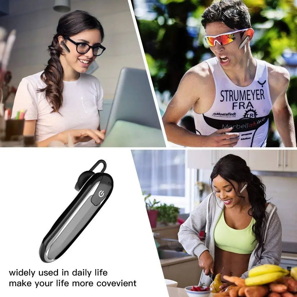 Длинные Срок службы батареи: встроенный 220mAh батарея, 1,5 часов быстрой зарядки, время работы в режиме ожидания: до 10 дней, непрерывное Время разговора до 16 часов и время работы в режиме воспроизведения музыки до 15 часов. Стабильность передачи: Bluetooth 5,0 поддерживает стабильную беспроводную передачу, мощный bluetooth-сигнал на расстоянии до 33 футов, оснащенный высокопродвинутым интеллектуальным процессором, обеспечивает мощное декодирование звука, И свободно звонит и проигрывает музыку без задержек. Удобный дизайн: гарнитура bluetooth с Сверхлегкая (0,4 унций) дизайн, мягкая, приятная на ощупь и безопасная для кожи ткань ушные вкладыши сделать в течение длительного времени, можно носить комфортно и уши не набухает или похода по магазинам. Эргономичные внутренние крючки для ушей можно поворачивать и регулировать, чтобы хорошо соответствовать ушам. Easeful earbud обеспечивает приятное настроение. Можно конвертировать в бинауральные: мы предоставили вам пару наушников. При необходимости, вы можете подключить конец соединения поднаушников к зарядному порту основных наушников, который становится бинауральным наушником, позволяя вам наслаждаться музыкой лучше. Функциональное описание: Поддержка голосового вызова. Воспроизведение музыки. Музыкальный переключатель вверх и вниз. Регулировка громкости. Поддержка последнего повторного набора. Вызов функции голосового номера. Функция голосовой подсказки для одновременного подключения двух устройств Bluetooth. Система IOS показывает мощность. Поддержка программного обеспечения. Поддержка использования замшевых наушников Беспроводные Bluetooth наушники, свободные руки Удобный дизайн, высокое качество изготовления будет лучшей причиной, по которой вы выберете нашу bluetooth-гарнитуру. Благодаря стильному дизайну и передовым технологиям вы будете выглядеть стильно и модно, когда будете носить его. Беспроводная bluetooth-гарнитура позволяет вам наслаждаться полностью бесплатным устройством, чтобы слушать музыку или отвечать на телефонные звонки. Не беспокойтесь о пропущенных деловых звонках или Оставайтесь на связи с друзьями во время вождения. Посылка включает в себя: 1 х Наушники 1x зарядный кабель 1 Руководство пользователя 2 крючка для ушей