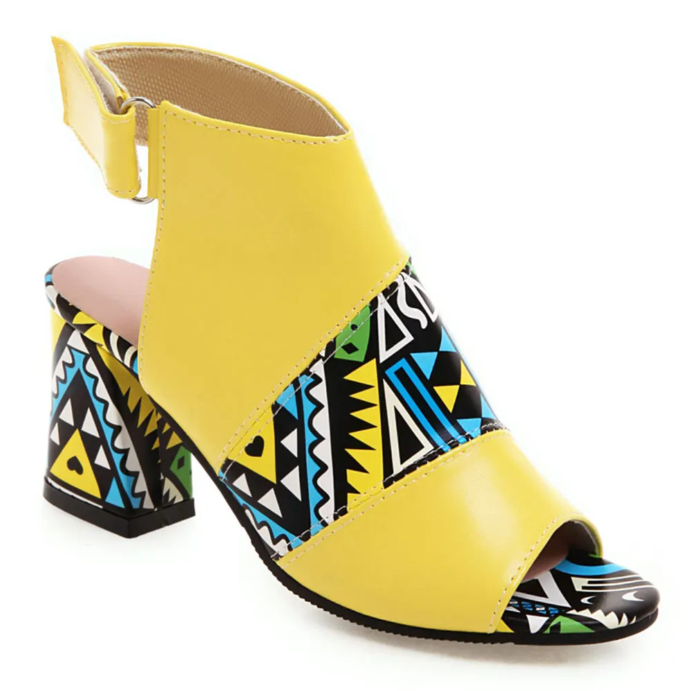 Женские босоножки на блочном каблуке Lloprost ke, зеленые, желтые сандалии до щиколотки с принтом, обмотка с крючком и открытым носком, лето 2019