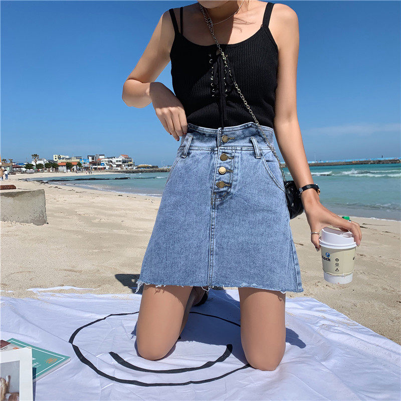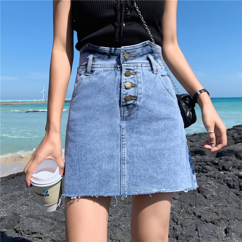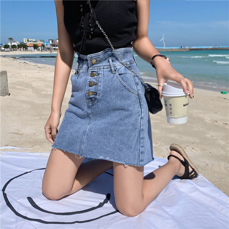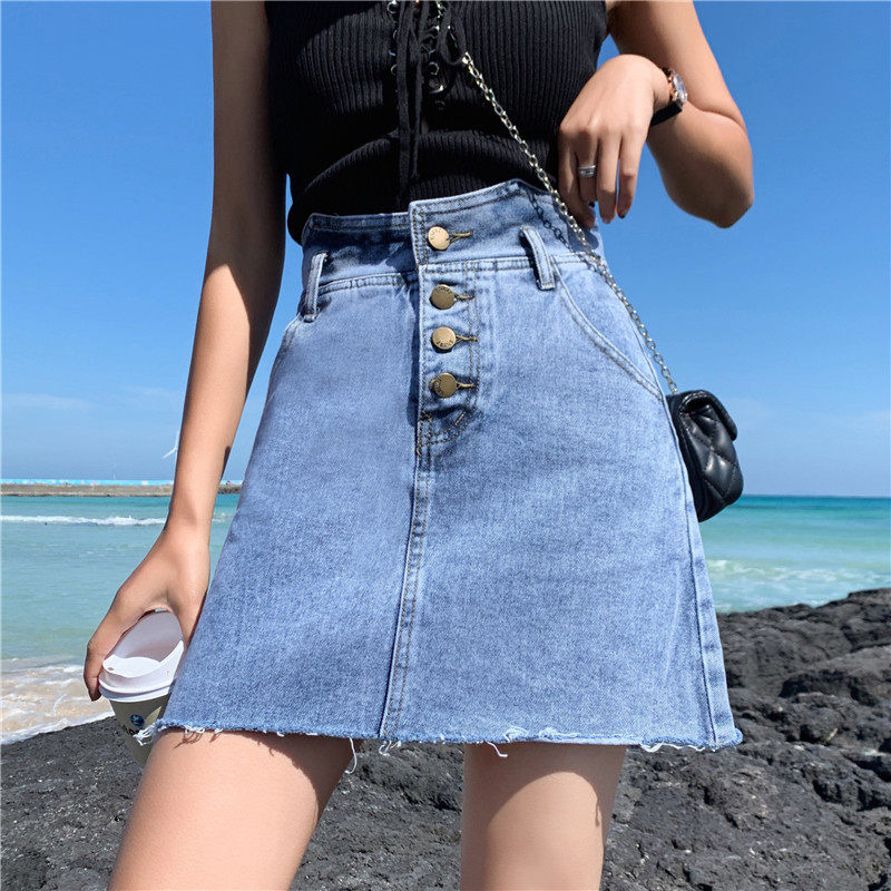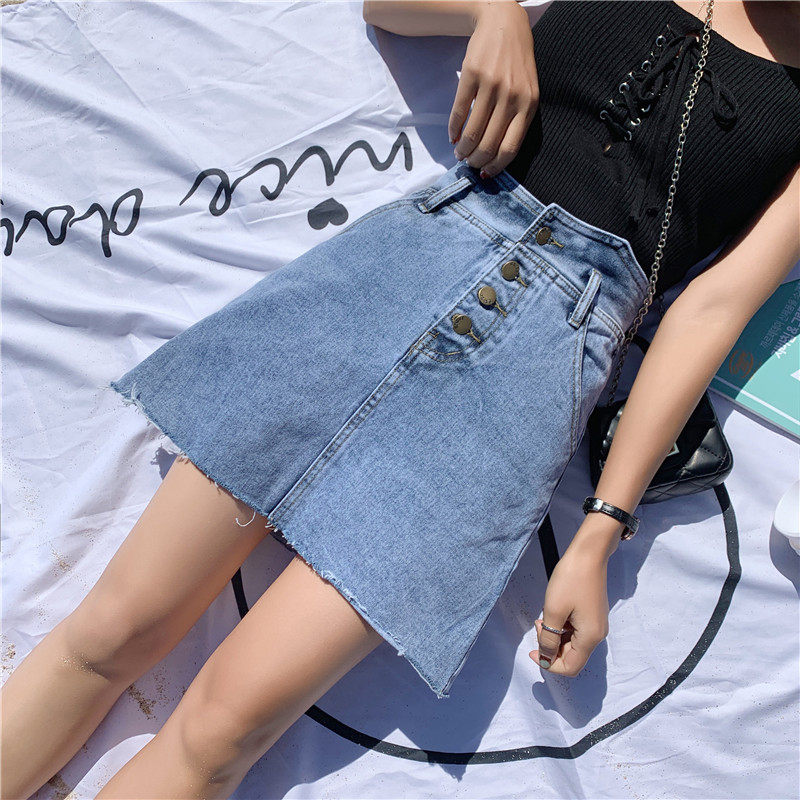 Сексуальная мини-юбка трапециевидной формы, женская летняя джинсовая юбка с высокой талией, женская джинсовая юбка, асимметричная Saia джинсовая повседневная юбка с карманами и пуговицами Jupe LJ607