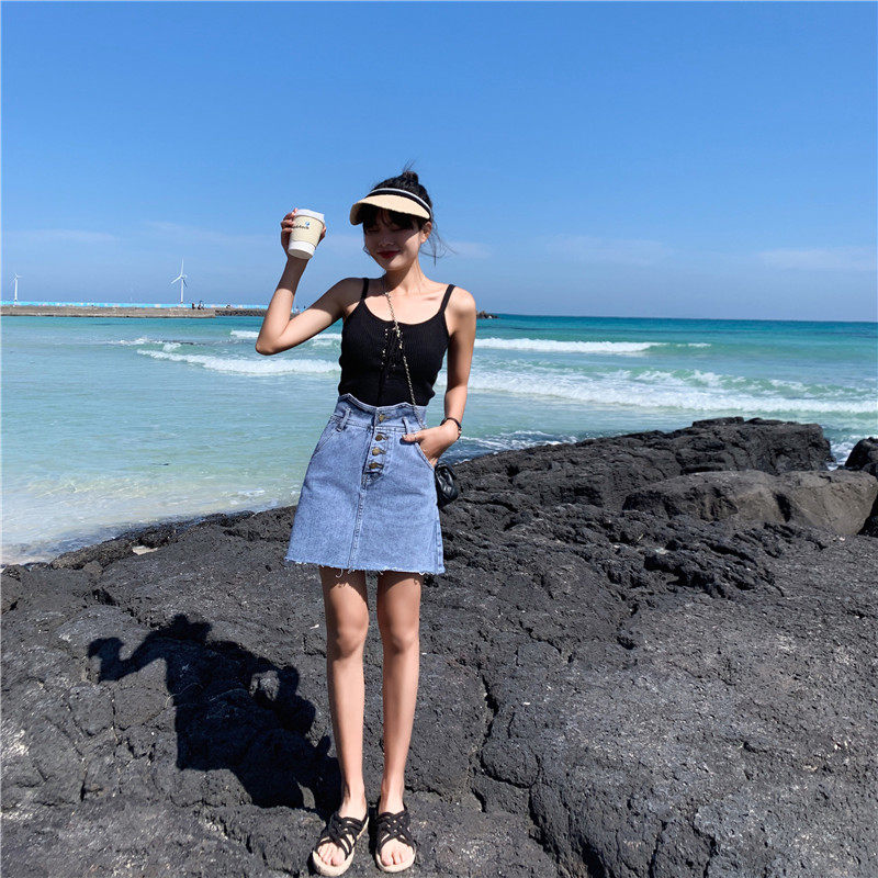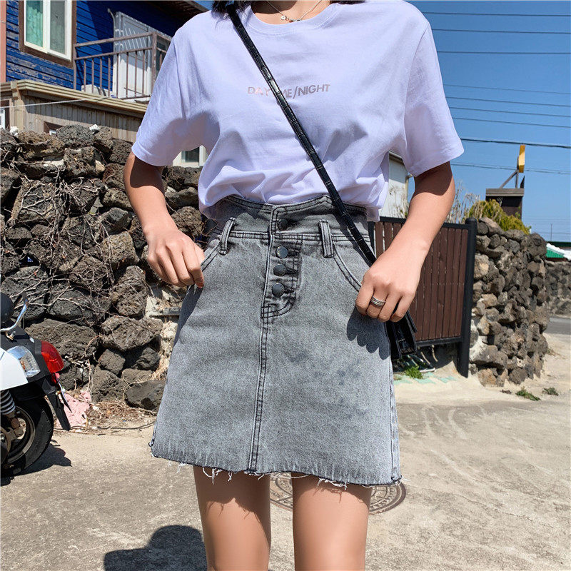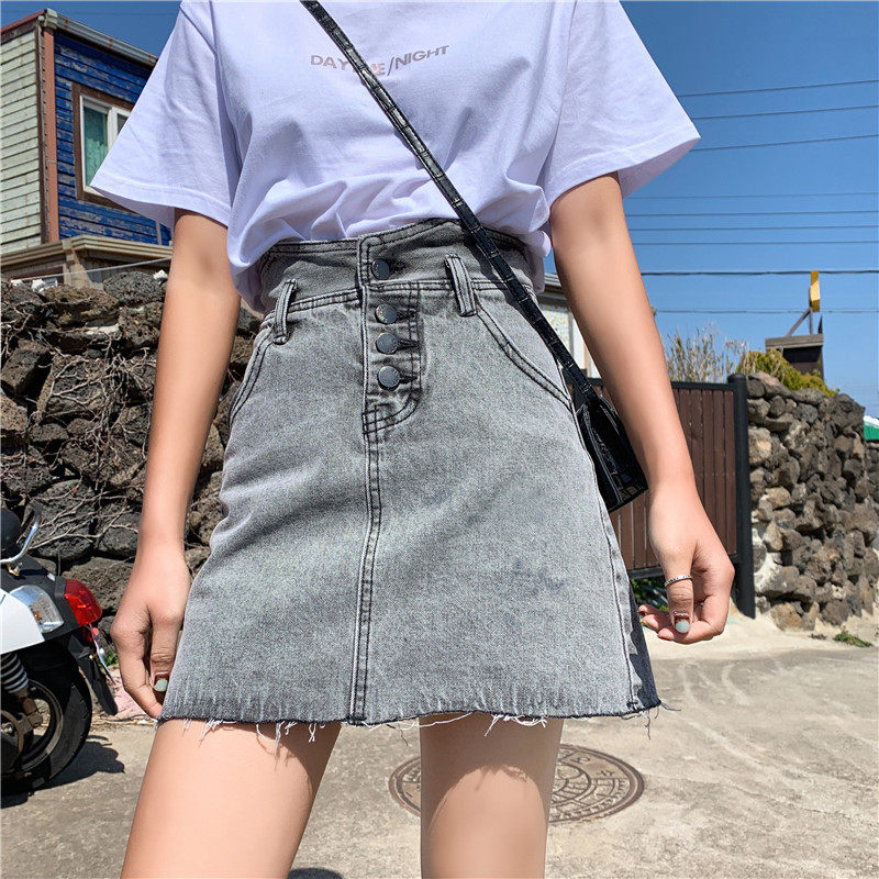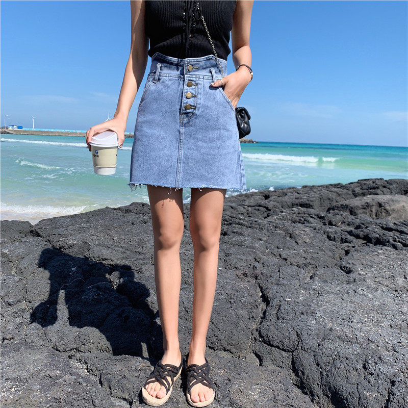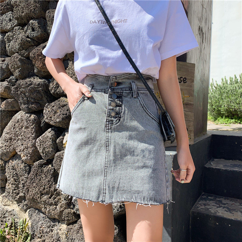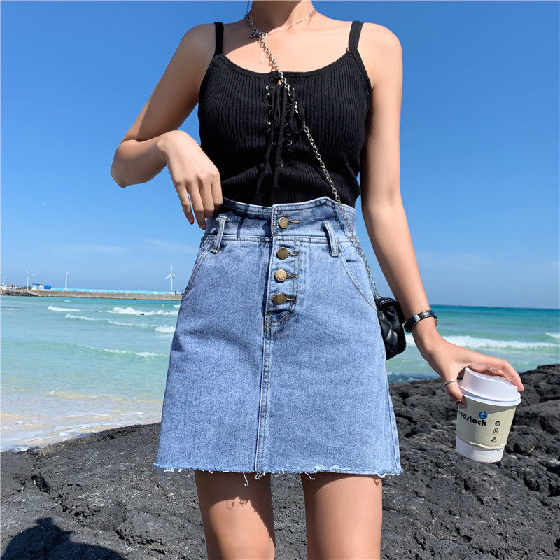 Сексуальная мини-юбка трапециевидной формы, женская летняя джинсовая юбка с высокой талией, женская джинсовая юбка, асимметричная Saia джинсовая повседневная юбка с карманами и пуговицами Jupe LJ607