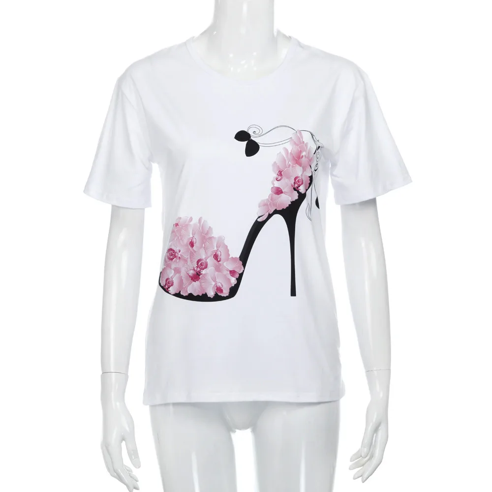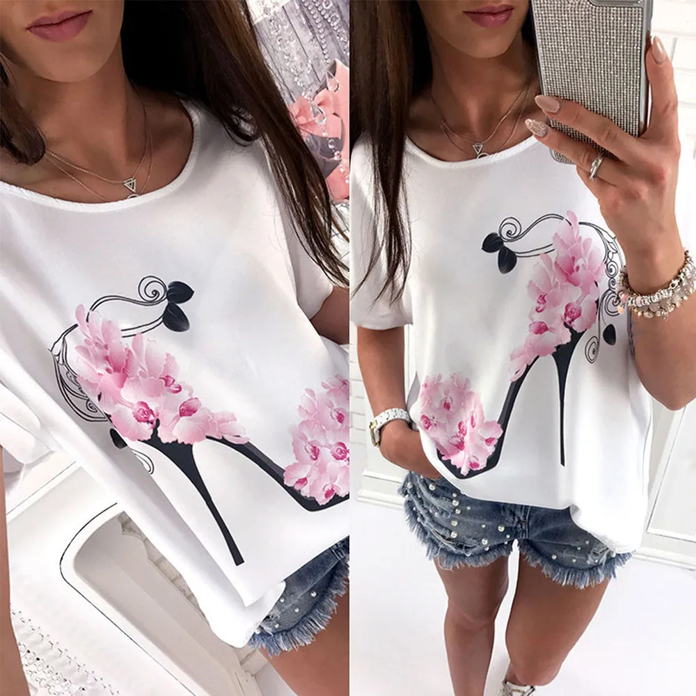 Для женщин Топы с короткими рукавами на высоком каблуке с принтом; пляжная Повседневная Свободная блузка; Топ; футболка