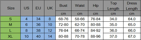 please check the measurement chart carefully before you buy the item. 1 inch = 2.54 cm Please note that slight color difference should be acceptable due to the light and screen. NOTE:It's Asia size, run much small, please order 1-2size up, or please confirm the measurement before choose size. What You Get: 1 x Women'sSEXY Top + 1Pcs Skirt (pls make sure the length,model figure is only for your reference) Preview: