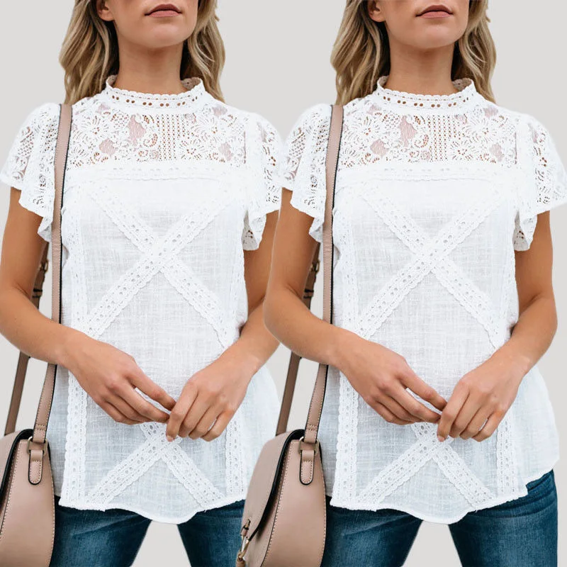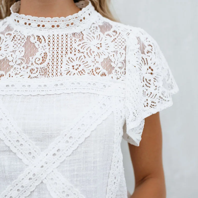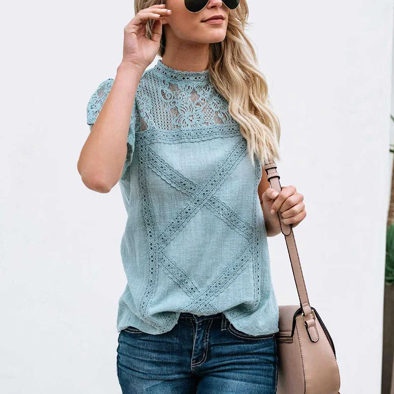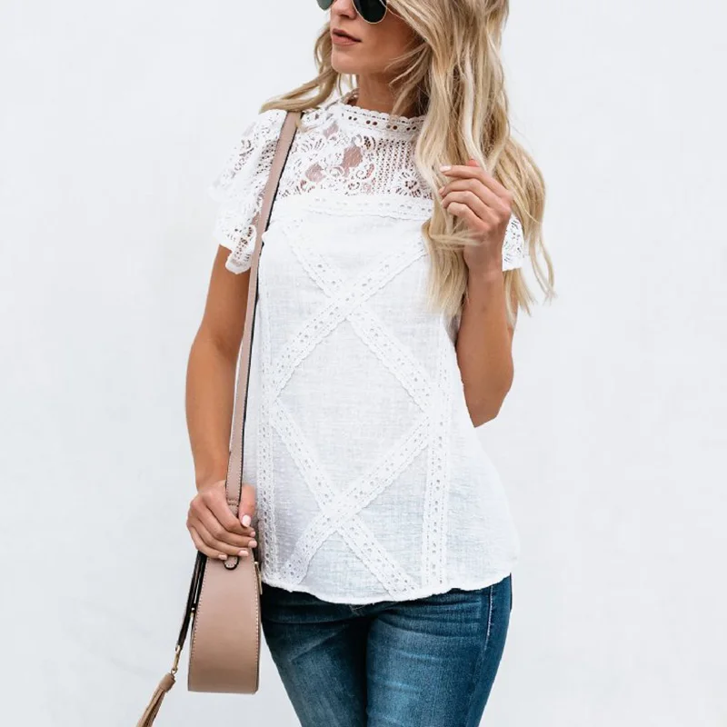 * Описание изделия: летняя; повседневная; удобная; кружевная; ажурная; короткий рукав; Геометрическая; Комбинированная