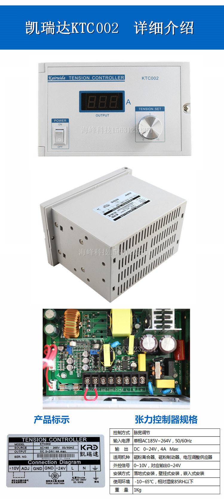 Высокоточный регулятор натяжения Kelida KTC002, его применение простое и удобное, маленькое и простое в установке. Выход стабильный, и качество компонентов стабильное и надежное. Максимальный выходной ток может достигать 4А. KTC002 ручной регулятор натяжения может легко осуществить обработку пленки, обмотку машины и другой контроль натяжения, который должен контролировать натяжную машину. 1. Питание от мощного импульсного источника питания 2. Использование широтно-импульсной модуляции, низкое нагревание, высокая эффективность 3. Отображение тока в реальном времени 4. Входной источник питания AC165 ~ 264V, выход DC 0 ~ 24V/4A 5, может быть внешним 0 ~ 10V контролем 6, автоматическая защита от перегрузки по току 7, различные способы установки, легко установить, красиво и практично