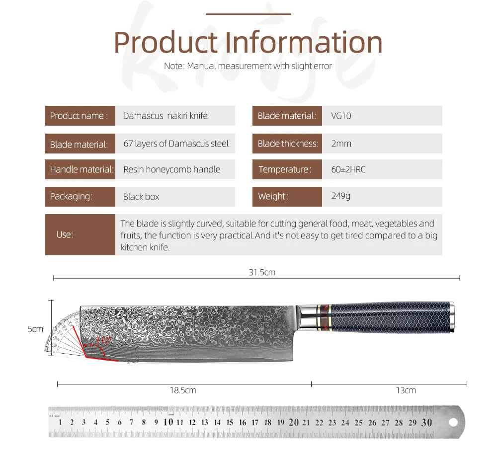 Материал: 67 слоев дамасской стали +Ручка с сотовым дизайном из смолы