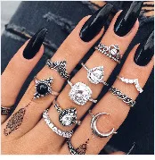 Бесплатная доставка, 13 шт./компл., богемное Винтажное кольцо с цветком в виде листьев, набор женских очаровательных колец для вечеринок, свадебных украшений, подарок