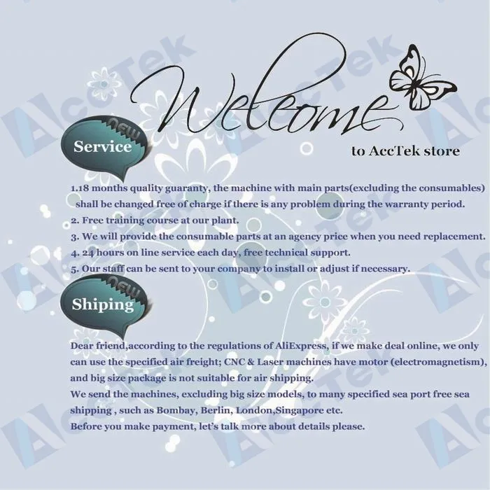 Наш минимальный заказ-1 Набор машин. Мы можем отправить фрезерный станок с ЧПУ 6090 цены непосредственно в порт вашей страны или на ваш завод, пожалуйста, сообщите нам ваше имя порта или ваш подробный адрес. Будет самая лучшая перевозка груза и цена машины отправить к вам