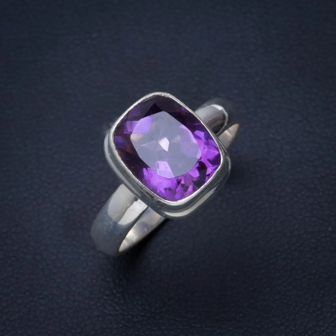 Натуральное аметистовое уникальное серебряное кольцо ручной работы с 925 пробы 8,75; B1349