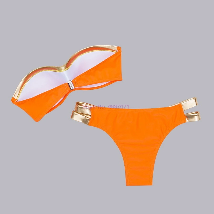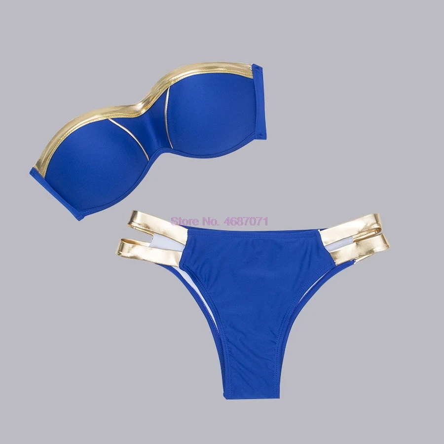 Description: Walk along the beach and show off your good body shape in this sexy bikini. Features: Padded cups improve the shape of the breast. Gold stamping is fashionable and eye-catching. Neat stitching and good workmanship. Notice: The swimsuit has good flexibility. Size is for reference only. Swimsuit size is different from your undergarment size. Warm Tips: Wash in cool water, line dry. Avoid over washing, do not scrub it hard and prevent sharp things and overexposure. Gender: For Women Material: Polyamide Bra Style: Padded Support Type:under Wire Pattern Type: Others With Pad: Yes Swimwear Type: Bikini Waist: Low Waisted Elasticity: Micro-elastic |