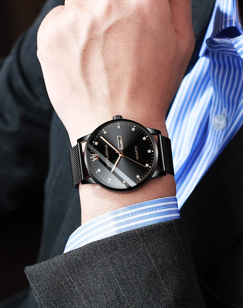 GERUISHA мужские часы Лидирующий бренд Роскошные повседневные часы кварцевые часы водонепроницаемые Бизнес часы наручные часы Relogio Masculino