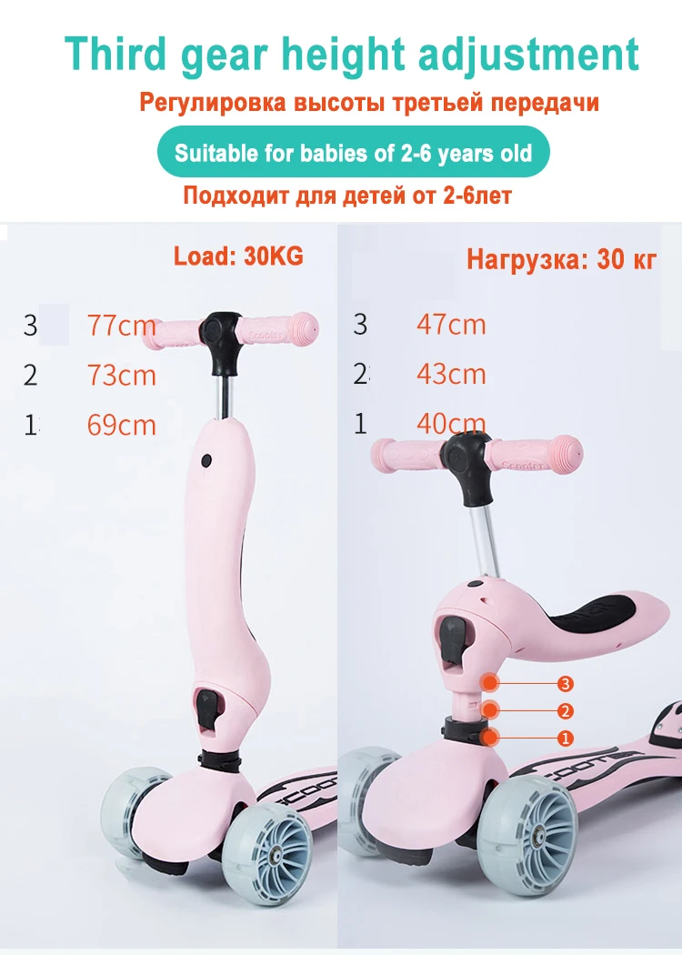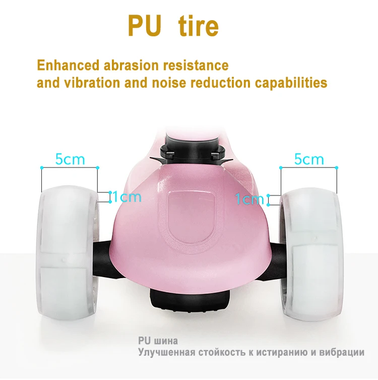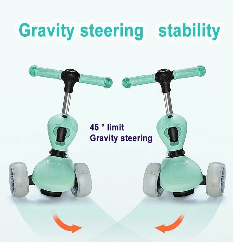 Скутер предназначен для передних и задних колес, особенно с рулевыми и тормозными устройствами. Гравитация используется для контроля направления продвижения. При наклоне ручки вправо, шкив поворачивается вправо. В противном случае он поворачивается влево. Когда педаль закрыта, шкив немедленно останавливается. Поворот, тормоз, легко овладевать