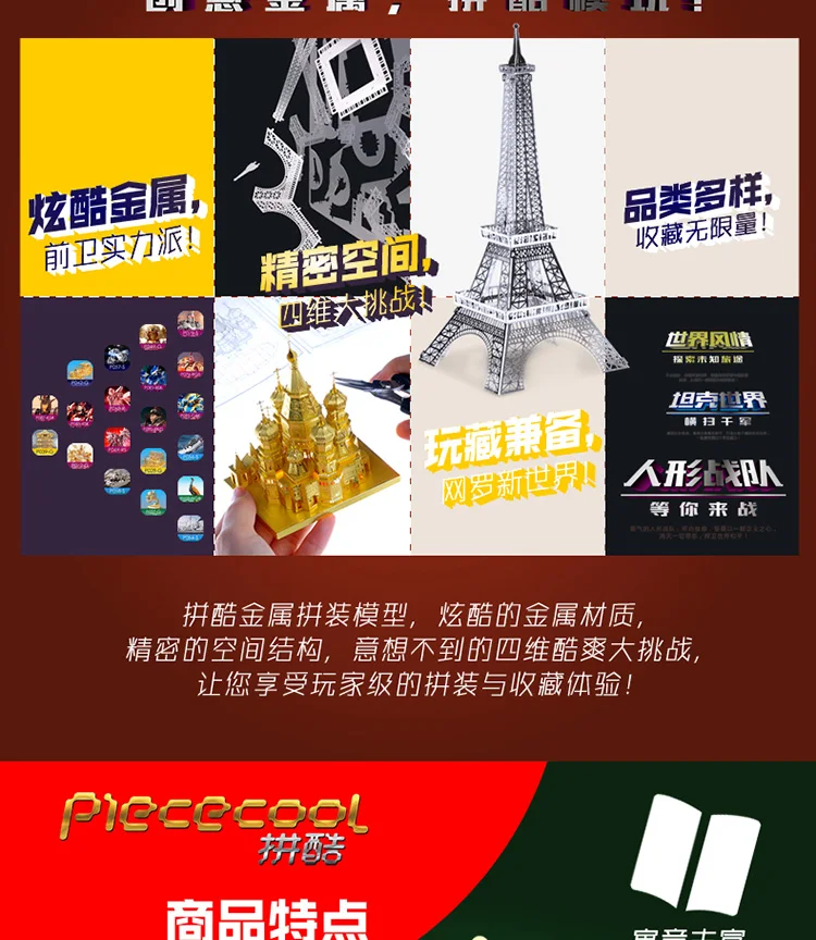 1.3D металлическая головоломка 2. Высококачественный металлический материал. 3. Подходит для коллекции. 4. Обучающие игрушки и подарки. 5. Модель домашнего декора.
