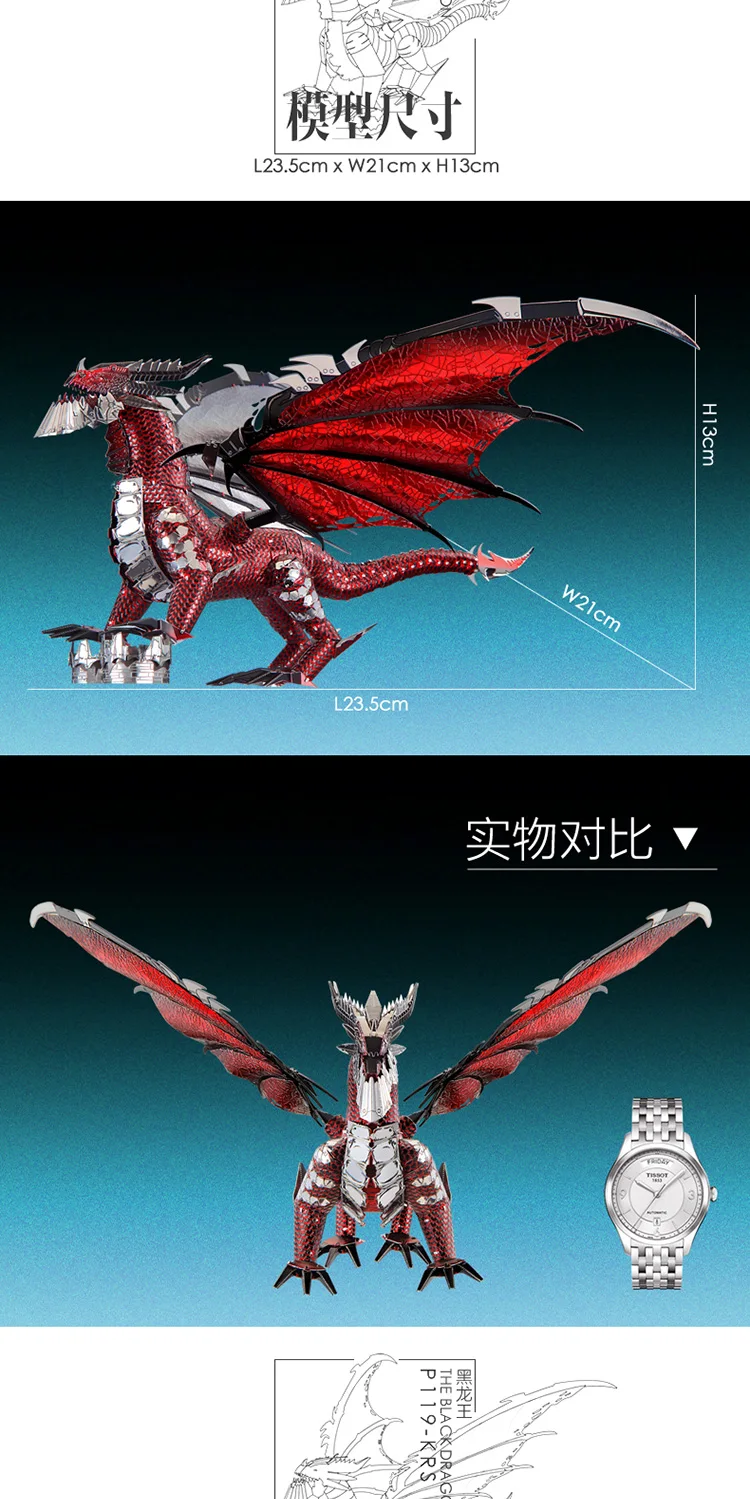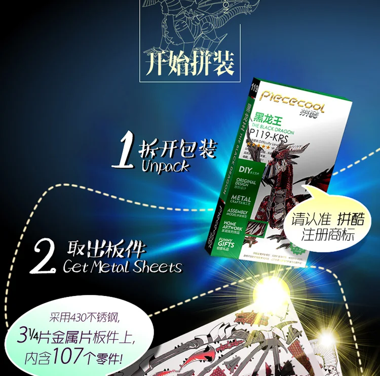 Piececool 3D металлическая головоломка Черный Дракон модель DIY нано лазерная резка ручная головоломка для взрослых детей Детские коллекционные развивающие игрушки