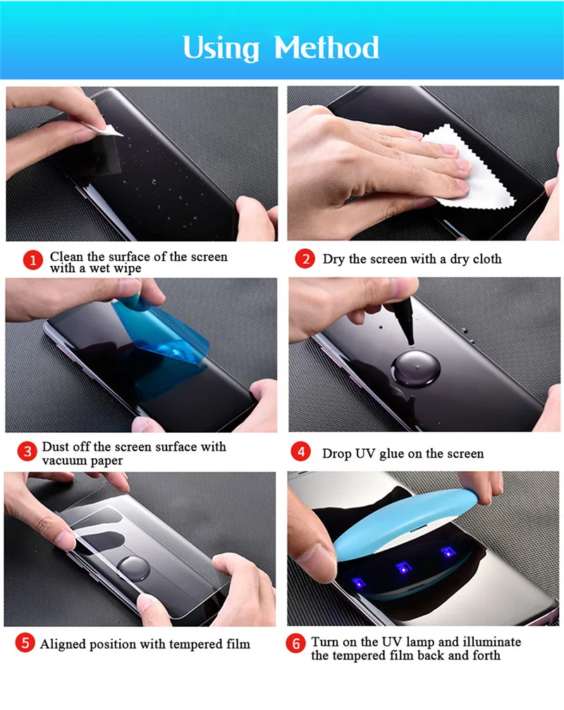 О: технология дисперсии жидкости: наше запатентованное жидкое стекло равномерно рассеивает весь экран, включая наличие царапин и потертостей, и затвердевает, чтобы создать проникающий край для края барьера при ремонте старых трещин и дефектов.