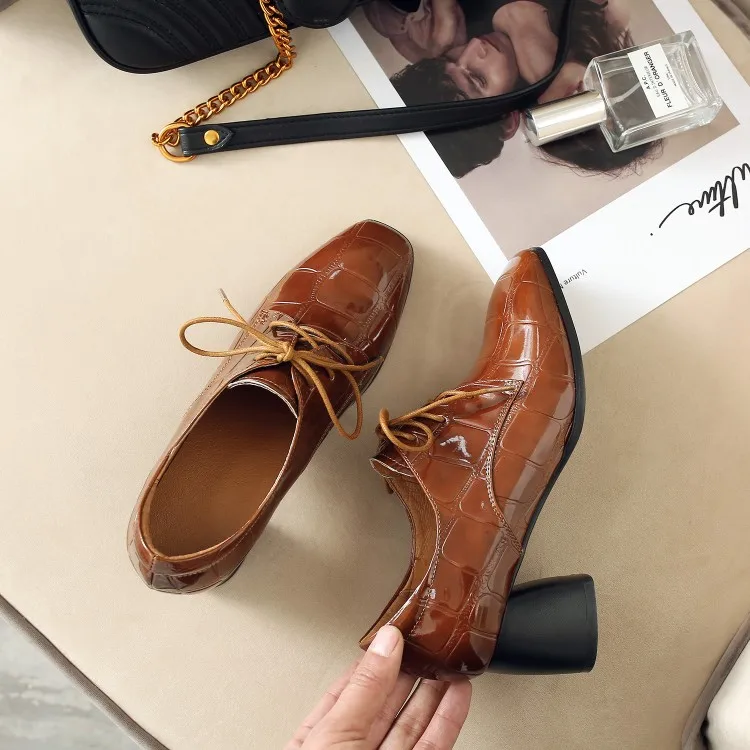 Туфли-лодочки женские из натуральной кожи на Высоком толстом каблуке с острым