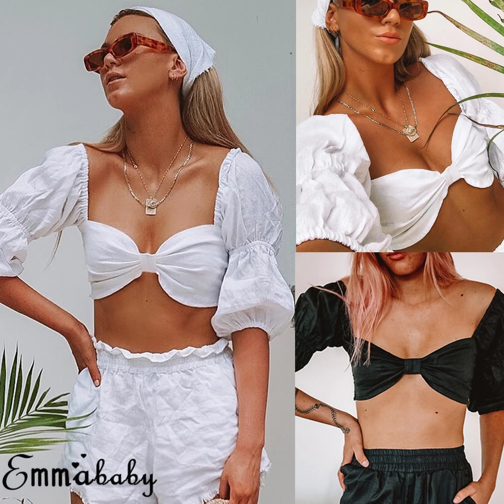 Майка женская укороченная с V-образным вырезом пикантный топ на завязках спереди