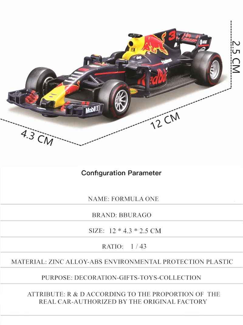 [Стандарт упаковки] картонная прозрачная упаковка, модель с базовым дисплеем[Метод обслуживания] при очистке вы можете заполнить немного спирта и протереть его сухой тканью. Не протирайте водой.[Функция модели автомобиля] две двери не открываются + крышка двигателя не открывается + передние и задние колеса могут вращаться[Название модели] 2018 Ferrari F1 Red Bull Racing Mercedes F1[Материал модели] цинковый сплав/ABS/Резина[Бренд модели] BBURAGO[Соотношение модели автомобиля] 1:43[Цвет модели] красный