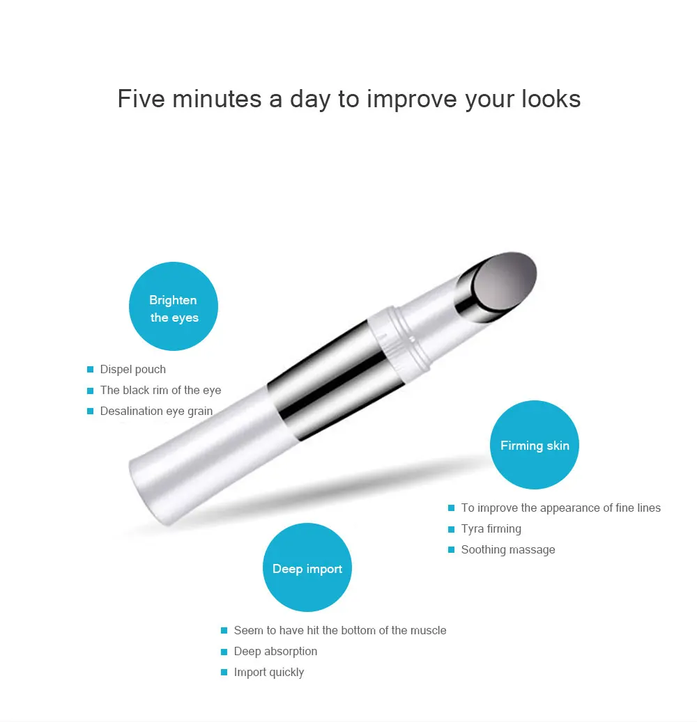 Улучшает кровообращение вокруг глаз, регулирует давление глаз, снимает усталость глаз, эффективно устраняет отек глаз, минимизирует тонкие линии, идеально подходит для удаления мешков для глаз, темных кругов, тонких линий, И гусиные лапки.