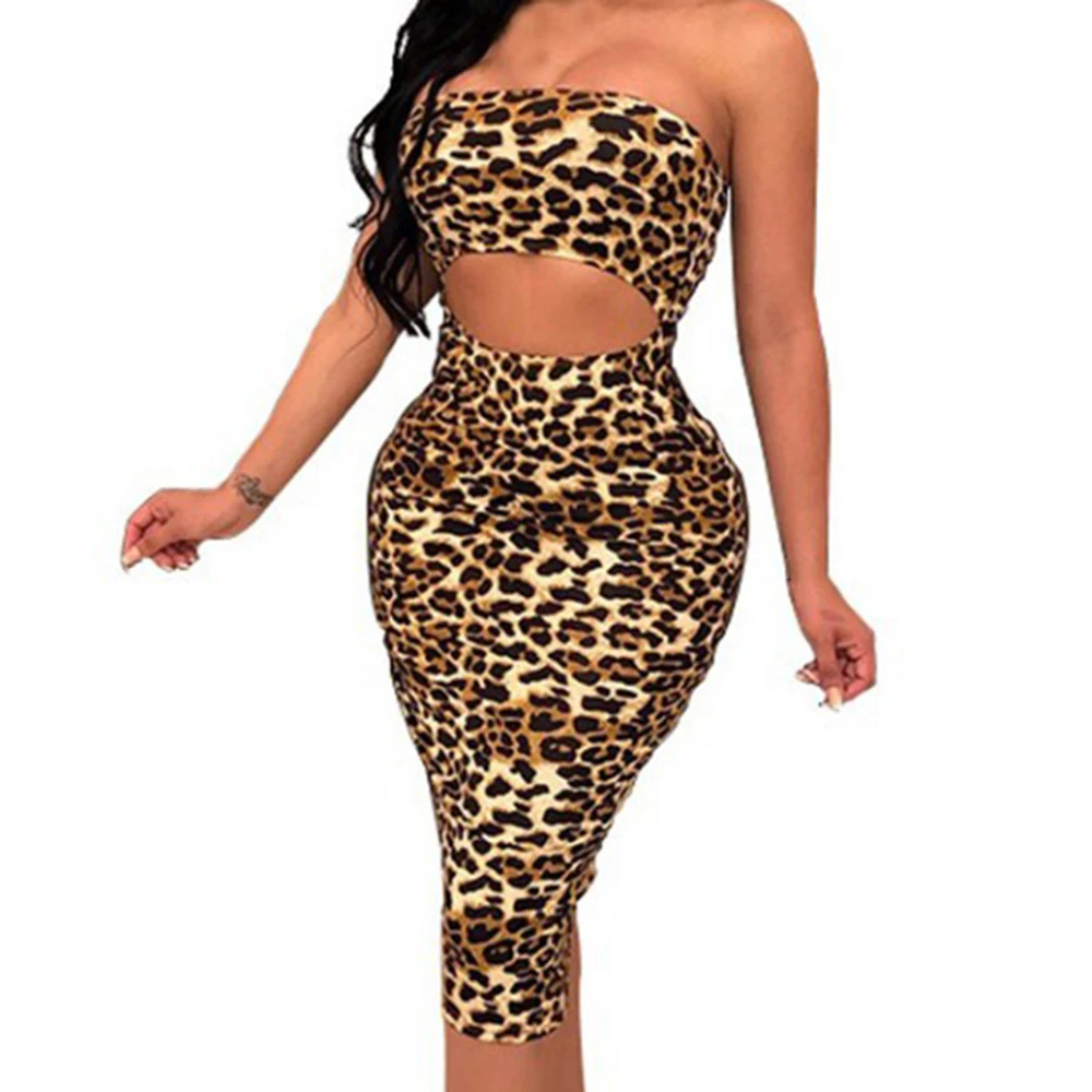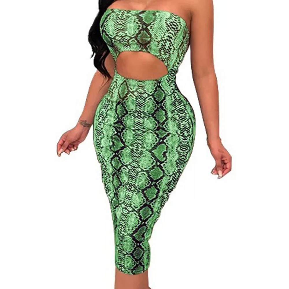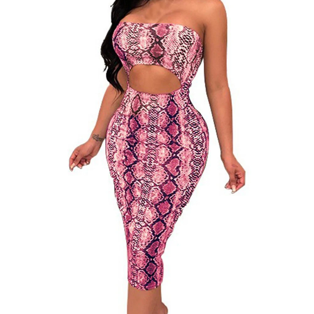 * Описание товара:Женская одежда, летняя тонкая сексуальная, Змеиный/леопардовый принт, без бретелек, платье с открытой спиной, вечерняя Клубная одежда