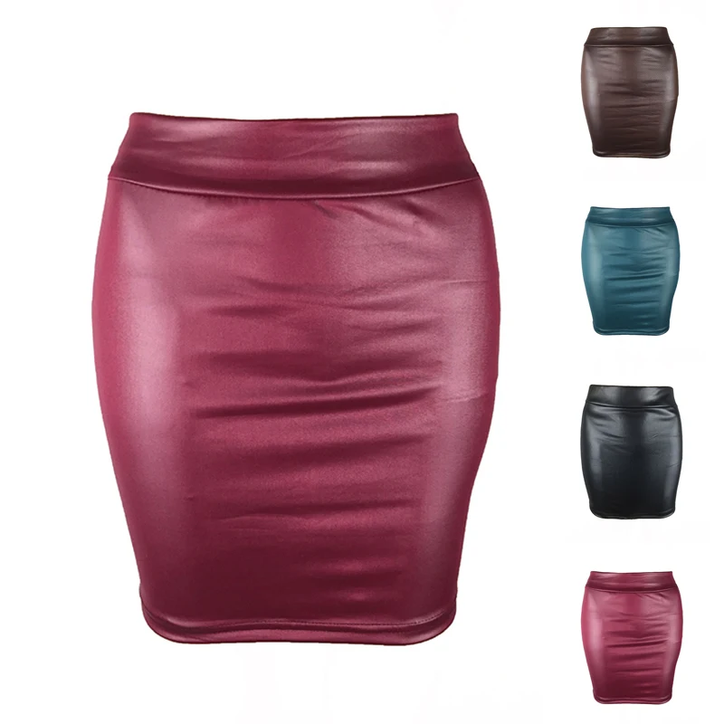 * Описание товара:Горячая юбка женская сексуальная искусственная кожа Карандаш Bodycon Высокая талия мини платье Короткое