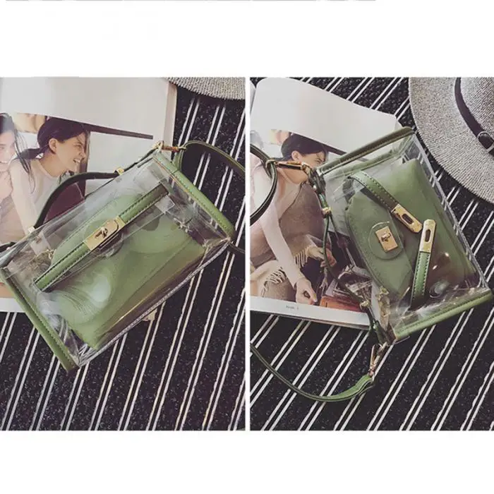Hot Simple Fashion Women Messenger Bags Leather Lock Catch Transparent Handbag Ladies Sweet Girls Shoulder Bag BVN66