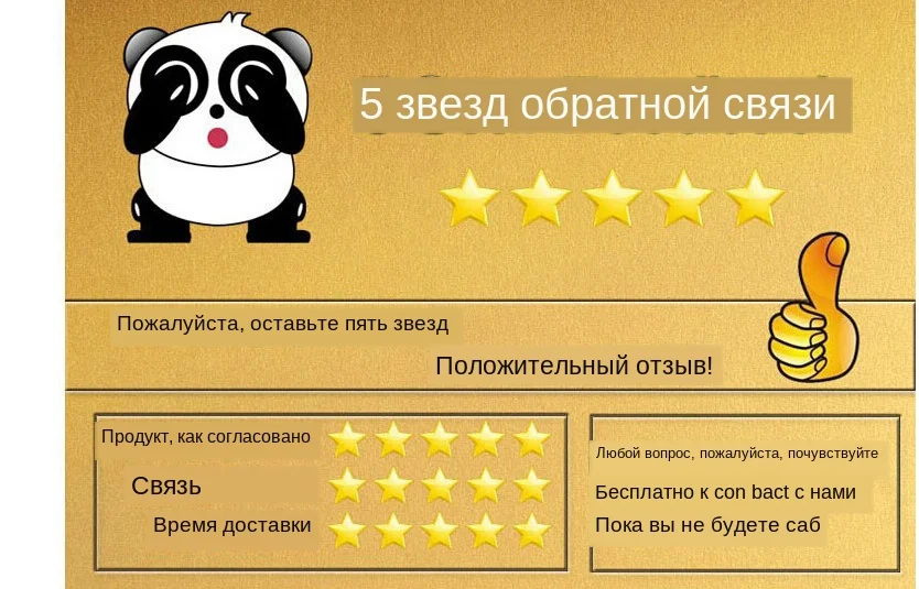 Доставка Мы обычно отправляем ваш товар через авиа-отправление Почты Китая, E packet, Singapore Post, Swiss post и т. д., это занимает 7-39 дней, чтобы прибыть в пункт назначения. Потому что AliExpress платформе обычно требуется около 48 часов, чтобы проверить ваш платеж после подтверждения покупателя для заказов в AliExpress. Оплата Для вашего удобства, если вам нужно, мы можем декларировать ваши товары как «подарок/образец» в коммерческом счете-фактуре или таможенной декларации, И мы стараемся помочь вам минимизировать любые налоги на импорт GST или V.A.T. Но мы не можем гарантировать никаких налогов, которые зависят от политики вашей страны. Мы принимаем Alipay, paypal и т. Д.; Полная оплата должна быть произведена в течение 19 дней после размещения заказа, если нет, заказ будет закрыт автоматически после. Цена, которую вы оплатили за товары, исключая любой Таможенный налог. Мы не имеем никаких пошлин в странах назначения. Сервис после продажи Мы предлагаем Своевременное послепродажное обслуживание, если у вас есть вопросы или проблемы с вашим заказом, пожалуйста, свяжитесь с нами сразу, вместо того, чтобы оставить негативные отзывы или открыть спор, также мы будем отслеживать его и обрабатывать с вами. Свяжитесь с нами через alibaba.com trade message или по электронной почте, предоставьте как можно больше деталей (фото/видео) о вашей проблеме. Если есть проблема самого продукта, мы предоставляем возврат без причины, однако, все вышеуказанное основано на без умышленного повреждения человека. Мы надеемся, что все покупатели семьи здоровы и счастливы каждый день! Отзывы