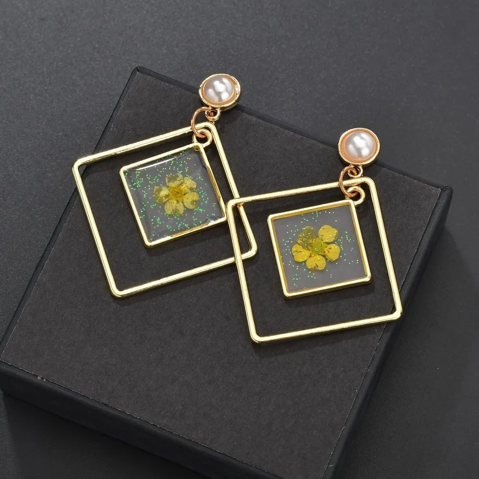 Тип: прозрачные акриловые серьги с сушеными цветами