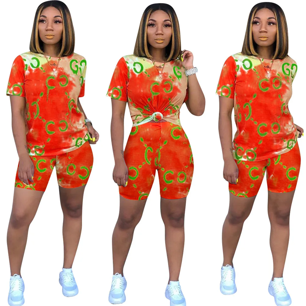 Повседневный комплект из 2 предметов с принтом Echoine, укороченный топ с короткими рукавами + штаны, женская летняя одежда для женщин, наряды
