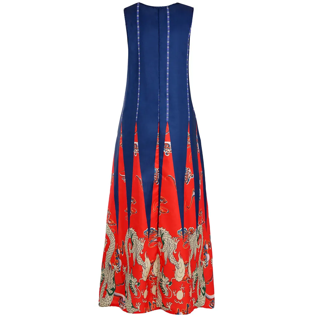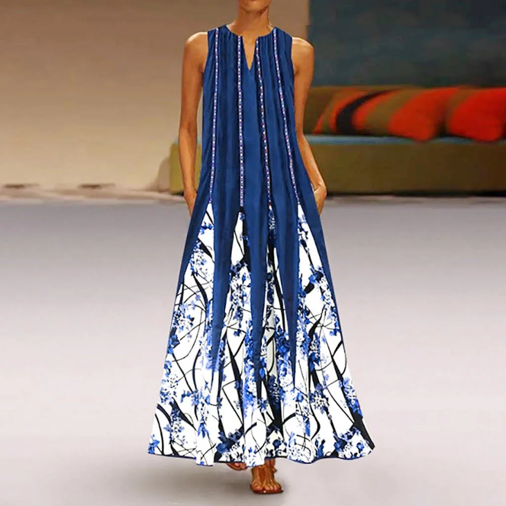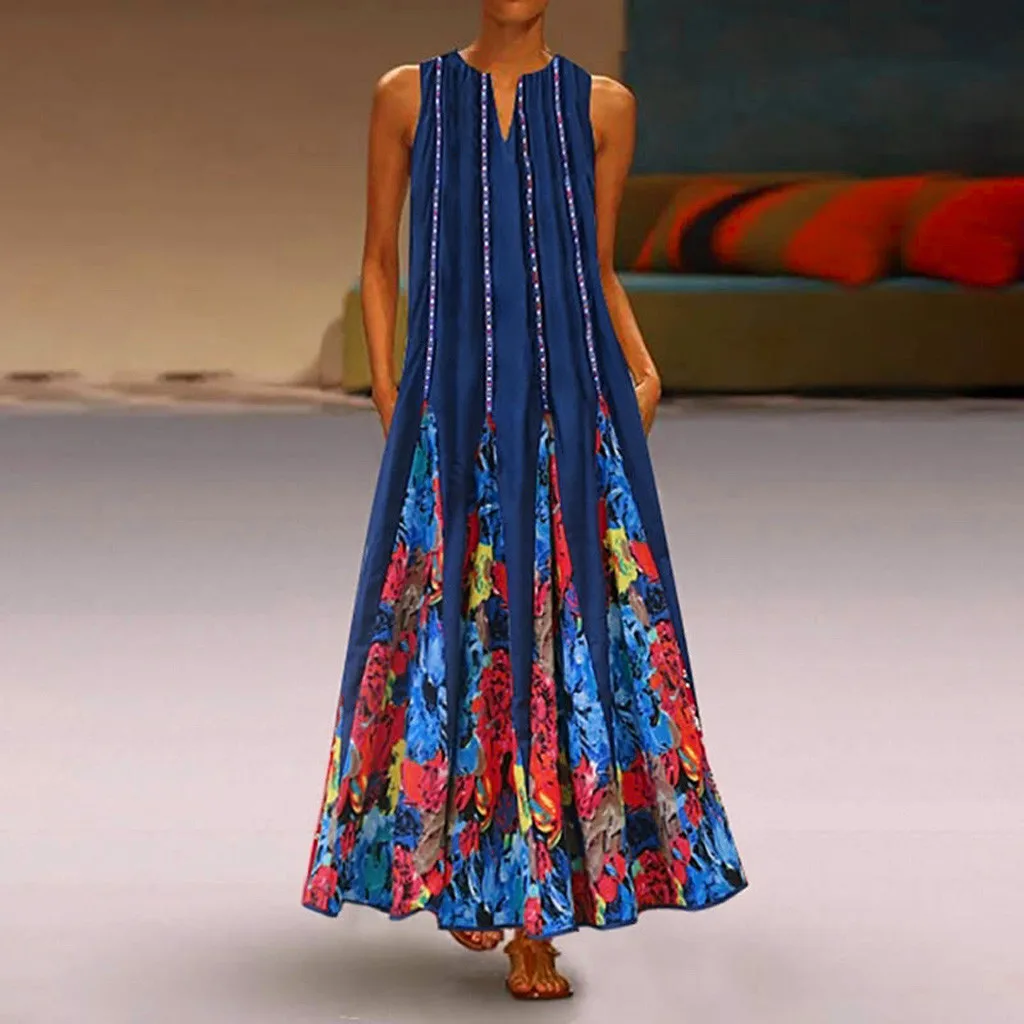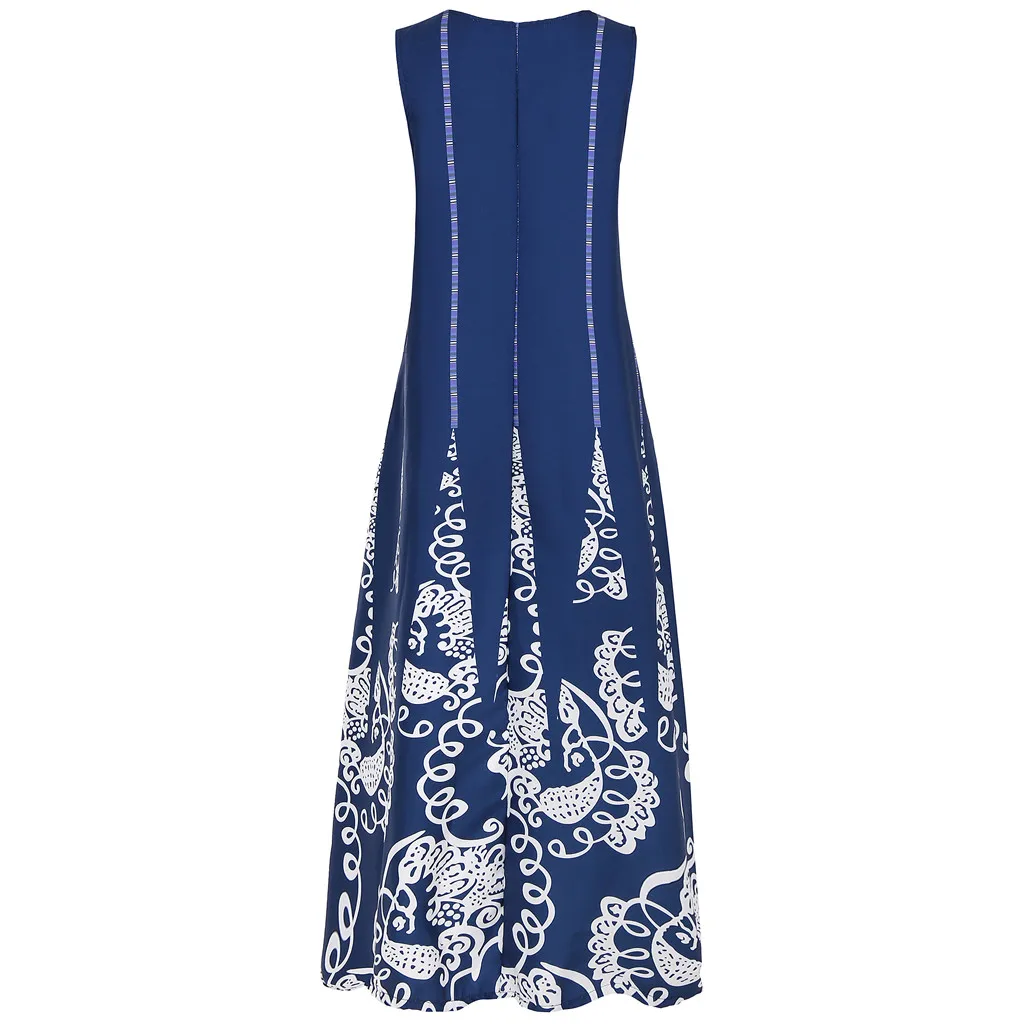 Макси платье для женщин размера плюс, новый сарафан, макси платье для лета в винтажном стиле с v-образным вырезом, богемное пляжное платье-футболка без рукавов
