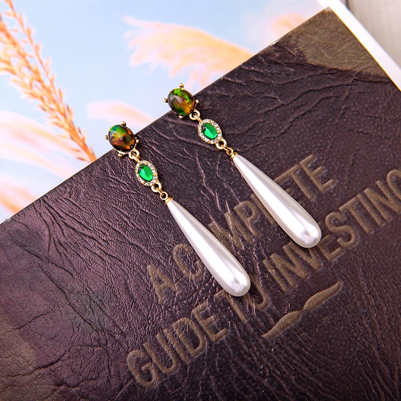 Грациозные серьги с имитацией жемчуга, серьги-подвески с зелеными кристаллами для женщин, подарок, модные ювелирные изделия, аксессуары для свиданий
