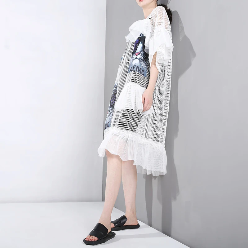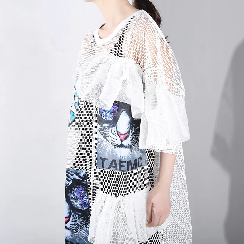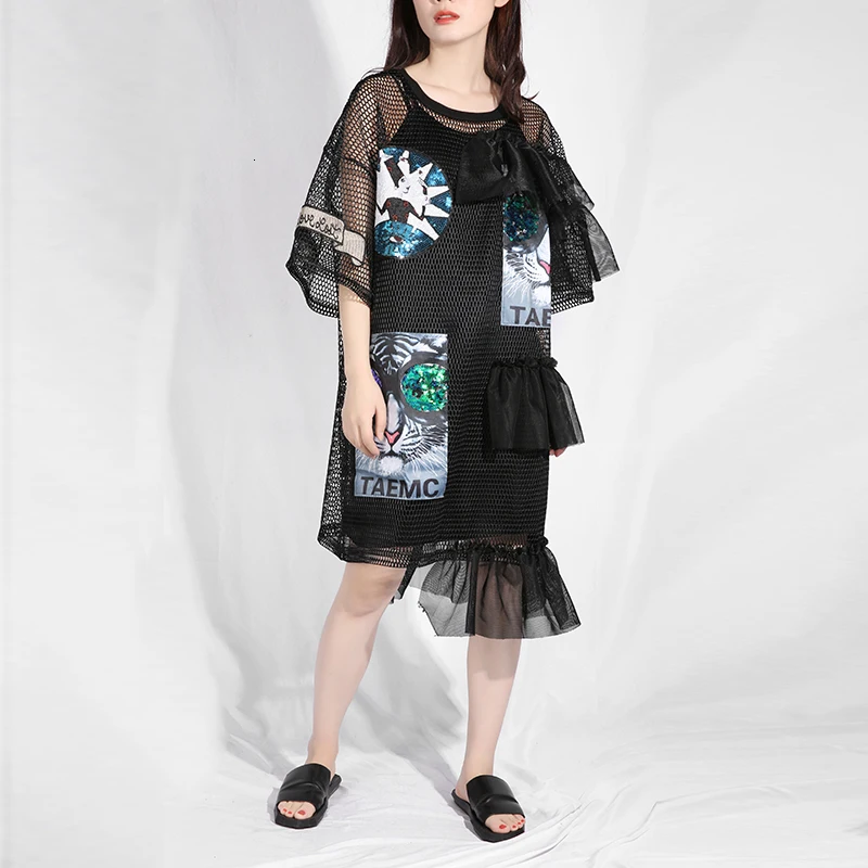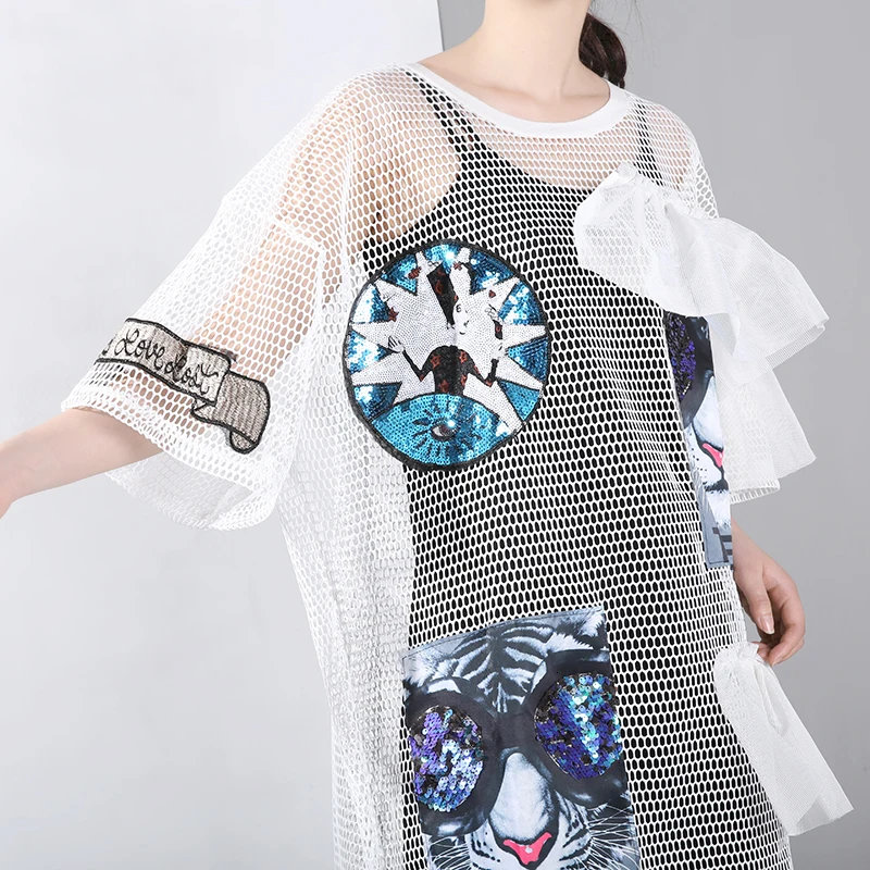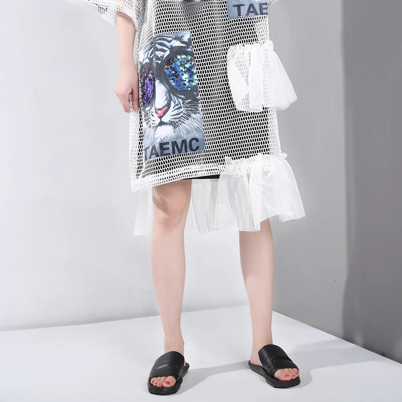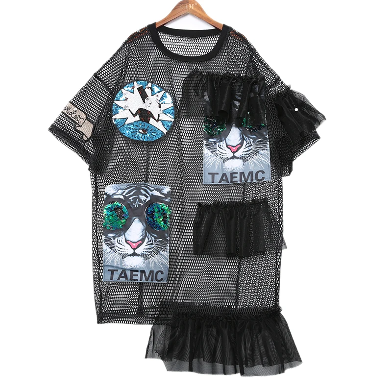 Vefadisa женское платье с принтом тигра и пайетками Сетчатое Открытое Платье До Колена
