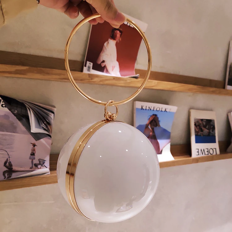 Акриловая сумка YYW с круглым помпоном на плечо для женщин, Новое поступление 2019, сумки через плечо с цепочкой, прозрачный вечерний клатч, сумки из ПВХ